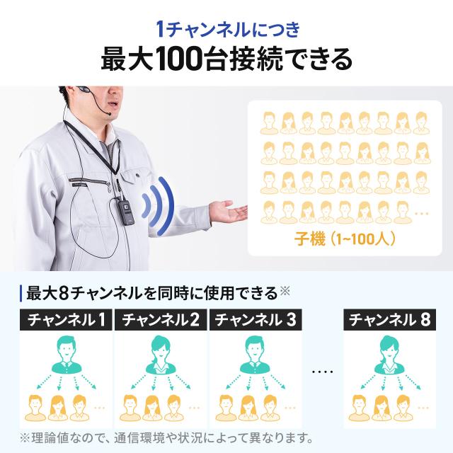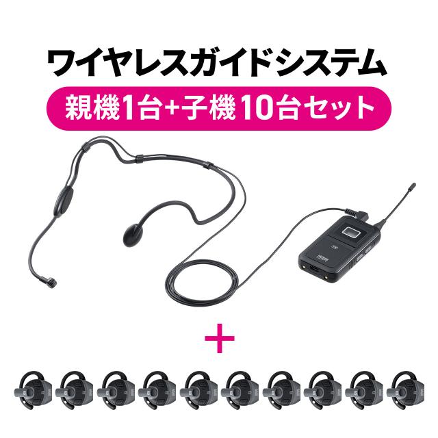 【親機1台+子機10台セット】ワイヤレスガイドシステム 単方向通信 親機 400-HSGS004T /子機 400-HSGS004R 1チャンネル最大100台接続[402-HSGS004-10]