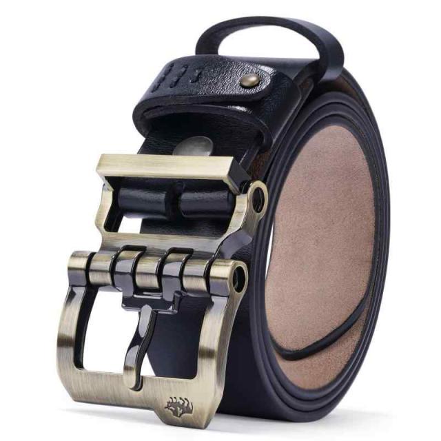 [BISON DENIM]ベルト メンズ 本革 大きいサイズ メンズ ベルト カジュアル 革ベルト ジーンズ用ベルト 作業用ベルト 紳士用ベルト ?さ調節可能 ?さ105cm〜130cm 化粧箱付き 父の日 プレゼント (ブラック1, 30-33/ベルト長