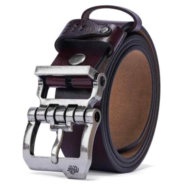 [BISON DENIM]ベルト メンズ 本革 大きいサイズ メンズ ベルト カジュアル 革ベルト ジーンズ用ベルト 作業用ベルト 紳士用ベルト ?さ調節可能 ?さ105cm〜130cm 化粧箱付き 父の日 プレゼント (ブラウン, 30-33/ベルト長さ