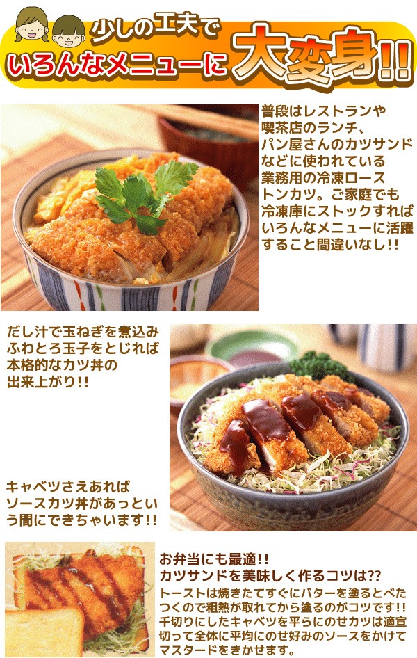 レストラン、喫茶店のランチメニュー、パン屋さんのカツサンド、お惣菜コーナーなどで大活躍の冷凍トンカツ。