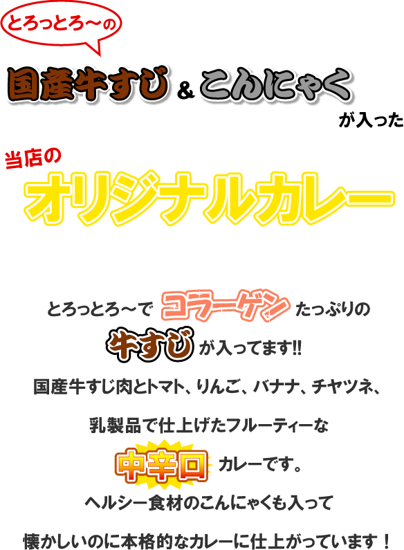 | 原材料名 | 〔中辛〕牛すじ肉、カレールー、ソテーオニオンペースト、こんにゃく、りんごピューレ、バナナピューレ、人参ペースト、トマトケチャップ、チヤツネ、乳等を主原料とする食品、カレー粉、生姜ペースト、にんにくペースト、砂糖、食塩、調味料(アミノ酸等)、着色料(カラメル・カロチノイド)香料、酸味料(原料の一部に乳、小麦、落花生、牛肉、大豆、鶏肉、バナナ、豚肉、りんご、ゼラチンを含む) |
