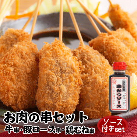 めっちゃ大阪 お肉の串カツセット(牛串・豚ロース串・鶏むね串が各5本の合計15本+ソース1本)(串かつ ギフト)