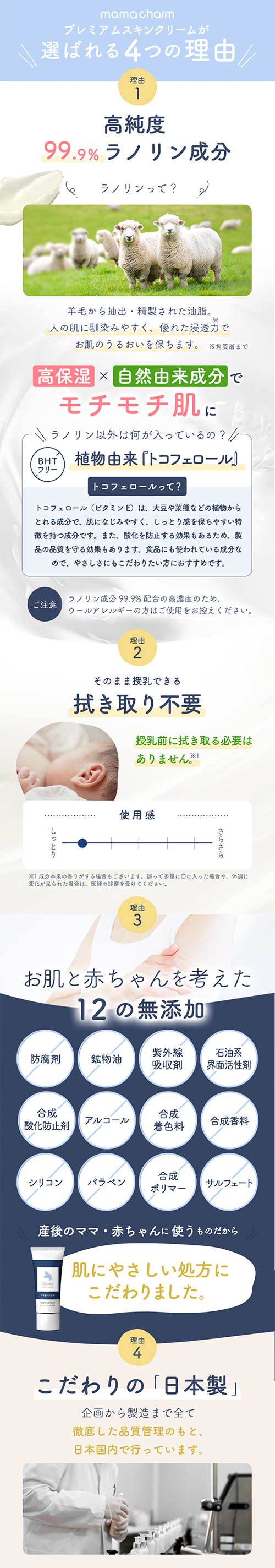 ・赤ちゃんでも使える天然ラノリン。日本製