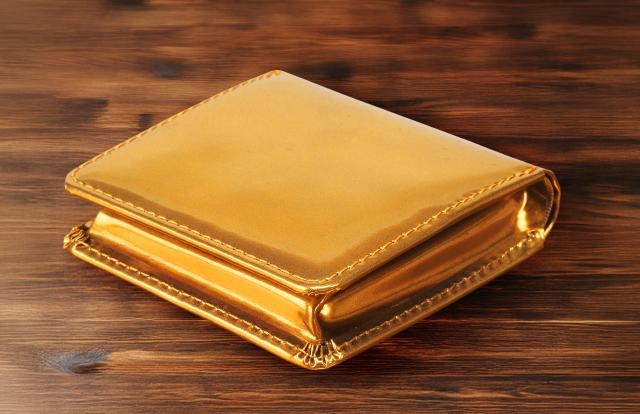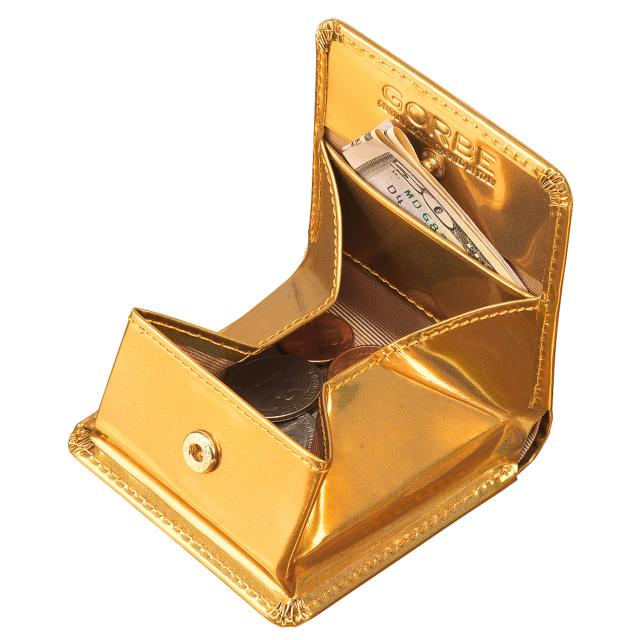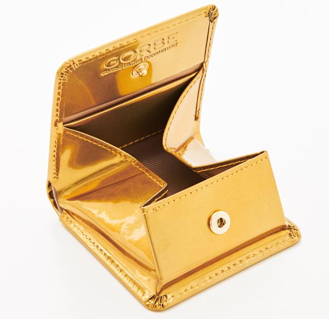 ●内外オールゴールドのインパクトだけではなく、ボックス型コインケースや内蔵ミニポケット等、機能性もしっかりと押さえています。