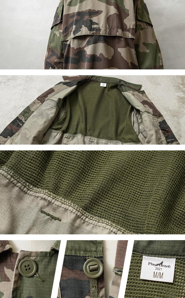 | 商品説明 | 実物 USED フランス軍 リップストップ フィールドジャケット CCEカモのご紹介です。 FELINというフランス軍で2000年代から取り入れられたシステムの流れを汲むフィールドジャケットです。 小規模部隊で活動し、敵を攪乱する戦術を行う部隊などが着用するゲリラジャケットとしても使用され、フランスの警察組織であると同時に、陸軍、海軍、空軍とともにフランス軍の一部として構成される国家憲兵隊でも使用されるフィールドジャケットです。 フランス軍の代表的なCCEカモ(CAMOUFLAGE CENTRAL EUROPE)が採用されたリップストップ生地にはコットンポリの混紡素材が使用され、イージーケアで高い耐久性を実現しています。 「FELIN T4」と同素材が使用され、ボタンは柔軟性があり、襟元のボタン以外はスロットボタン(パラシュートボタン)が使用されています。フロントはボタン留めの比翼仕立てで、背面上部にはメッシュの裏地が付属し、背中にベンチレーションが配置されることで、通気性を確保して暖かい季節にも活躍するジャケットです。 F-2ジャケットのような縦型のファスナーポケットと共に、ボタン開閉のフラップポケットも付属、両袖にユーティリティポケットも備わっています。肘は二重に補強され、脇下には通気性の良いホールが付属しています。 熱がこもりにくい機能的なジャケットは春や秋にはライトウェイトジャケットとしても活躍します。 | |||||||||||||||||||||||||||||||||||||||||||||||||||||||||||||||||||||||||||||||||||||
