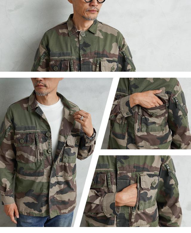 実物 USED フランス軍 リップストップ フィールドジャケット CCEカモ【Cx】【I】|ミリタリー アウター メンズ ファッション カモフラージュ 迷彩 ミリタリーウェア 古着 おしゃれ