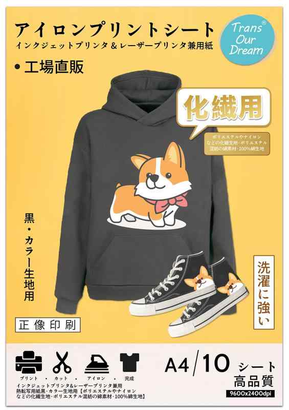 特性:インクジェットプリンター・レーザープリンター共用、正像印刷、転写簡単、化繊生地用、洗濯に強い、優れた耐久性、鮮やかな色