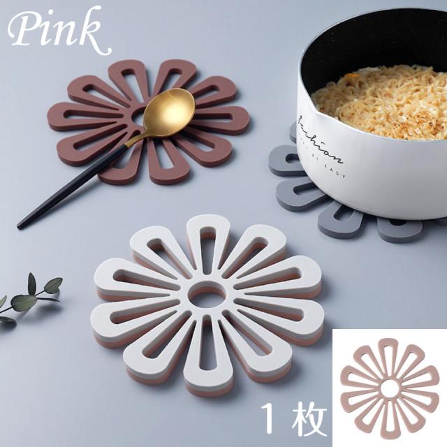 鍋敷きフラワー ピンク 1枚 オシャレ 北欧風 コースター