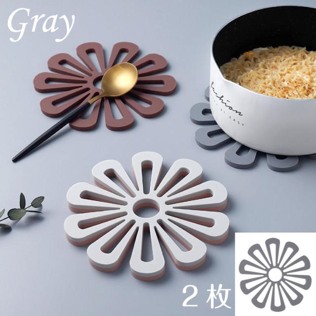 鍋敷きフラワー グレー 2枚 オシャレ 北欧風 コースター