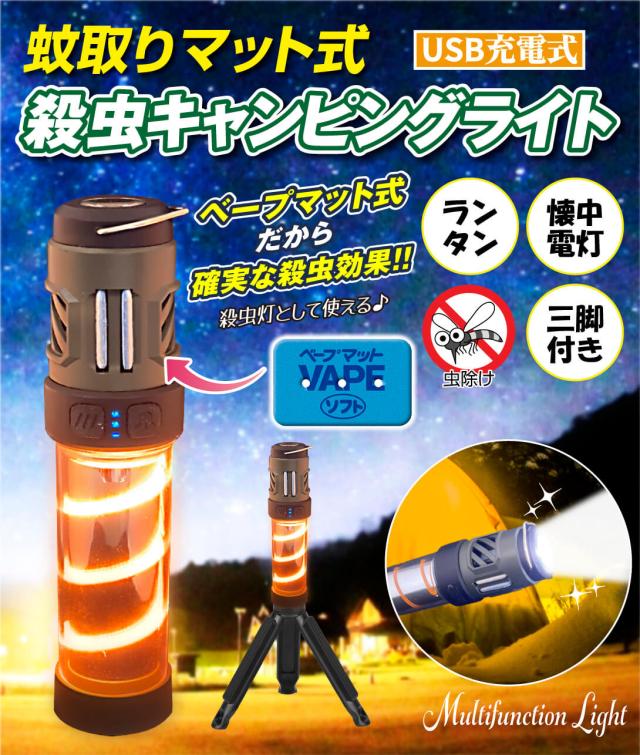 蚊取りマット式殺虫キャンピングライト 1個 蚊よけマット加熱 ベープマット キャンプライト搭載 USB充電式 蚊対策 ライト キャンピングライト 蚊除け 蚊よけ 防災 釣り 非常用 キャンプ アウトドア 登山 避難 緊急 携帯 夜釣り 虫対策 国華園