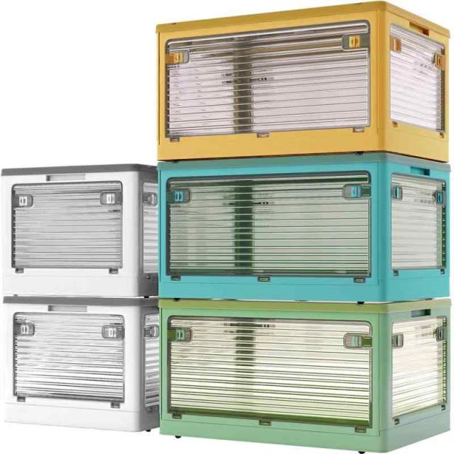 【折り畳み?上に蓋/側面扉付き】収納箱界の大革新使わない時に折りたたんで収納できます。スペースを取りません。側面四面も扉付き、収納にとても便利です。上にふた付き、物を入れやすい。蓋をロックできます。物を取るは側面扉から、ボックスを積み重ねる状態にも楽に物を取り出して、伝統的な収納ボックスに比べてもっと便利で、機能性が向上します。