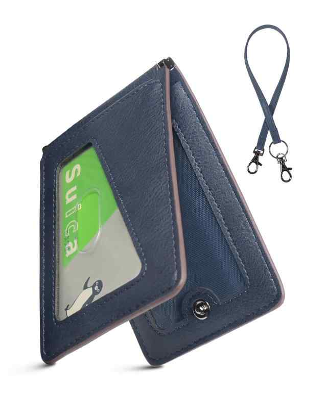 [LuoLuo] 定期入れ メンズ パスケース 5枚収納 本革Dカン 薄型 バタフライ ICカード2枚使用可能 ストラップ付き 通勤 通学 (ネイビー)