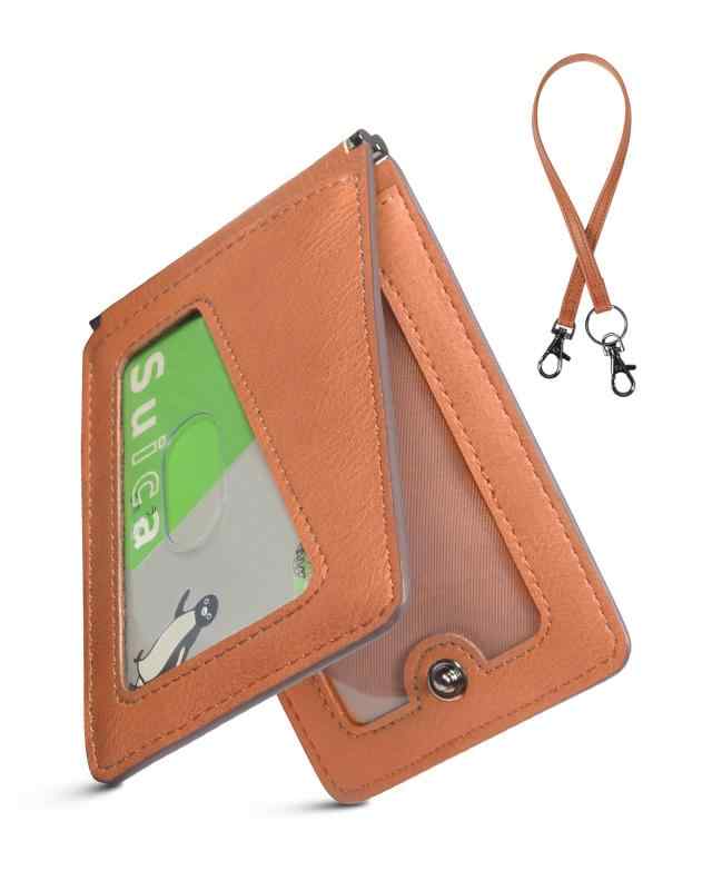 [LuoLuo] 定期入れ メンズ パスケース 5枚収納 本革Dカン 薄型 バタフライ ICカード2枚使用可能 ストラップ付き 通勤 通学 (ブラウン)