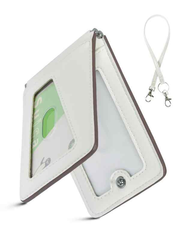 [LuoLuo] 定期入れ メンズ パスケース 5枚収納 本革Dカン 薄型 バタフライ ICカード2枚使用可能 ストラップ付き 通勤 通学 (ホワイト)