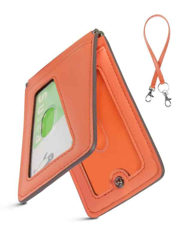 [LuoLuo] 定期入れ メンズ パスケース 5枚収納 本革Dカン 薄型 バタフライ ICカード2枚使用可能 ストラップ付き 通勤 通学 (オレンジ)