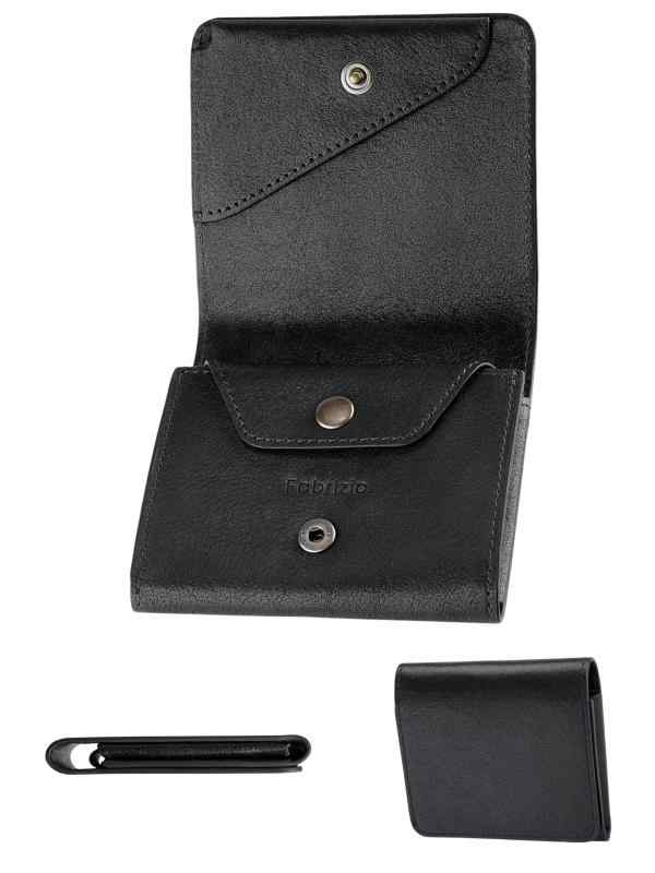 [ファブリツィオ] 財布 メンズ レディース 2つ折り 小銭入れ ミニ財布 小さい 薄い コンパクト 柔らかい 使いやすい イタリアン レザー 一流の革職人が作る 本革 (ブラック)