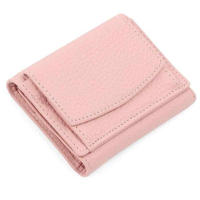 [imeetu] ミニ財布 三つ折り財布 レディース メンズ 本革 小さい財布 スキミング防止 小銭入れ付き みつおり 牛革 軽量 コンパクト RFID (ピンク)