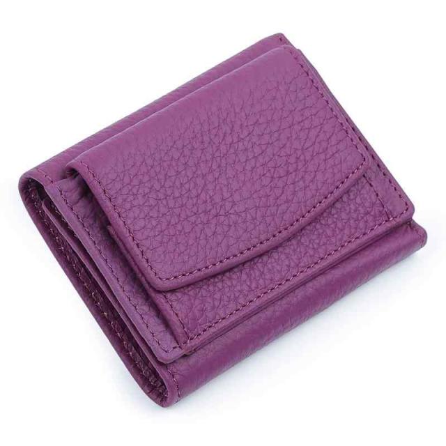 [imeetu] ミニ財布 三つ折り財布 レディース メンズ 本革 小さい財布 スキミング防止 小銭入れ付き みつおり 牛革 軽量 コンパクト RFID (パープル)