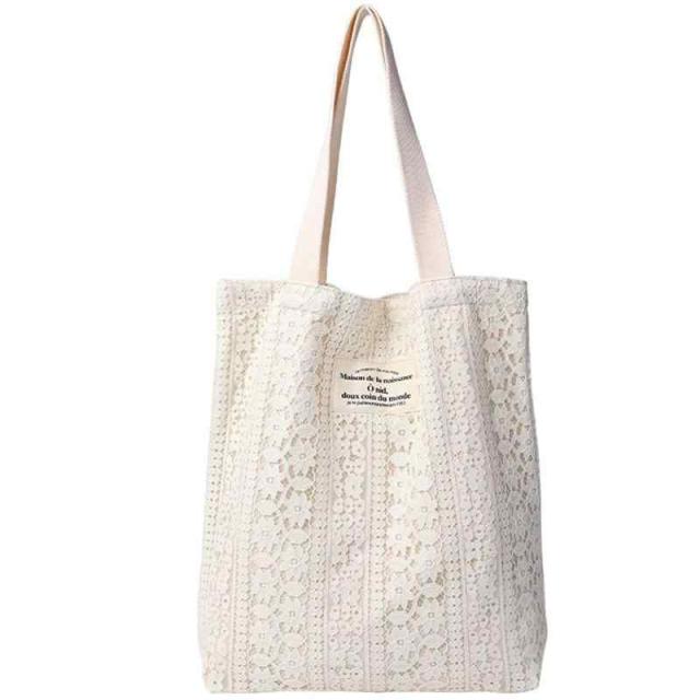 [Sueeya] (スイーヤ) トート バッグ レディース レース キャンバス ショルダー 2way 肩掛け 可愛い シンプル 軽量 おしゃれ シート 裏地付き 収納可能 ポケット ファッション 通勤 通学 (ライトベージュ, Free Size)