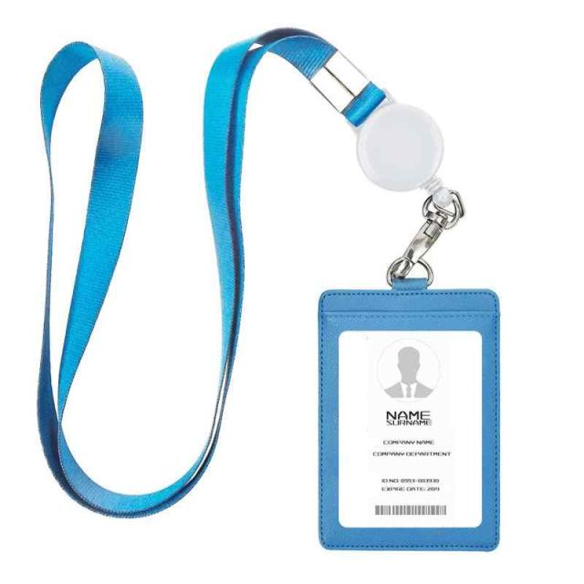 IDカードホルダー ネームホルダー 名札ホルダー PU 横型 社員証 カードケース カードケース メンズ 防水 伸縮リール式 ネックストラップ 吊り下げ パスケース カード入れ 名札ケース 定期入れ 通勤 通学 男女兼用 名刺入れ (縦+みずいろ)