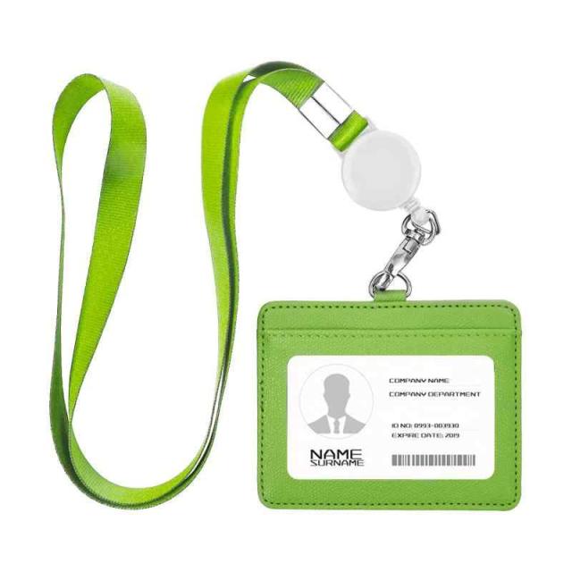IDカードホルダー ネームホルダー 名札ホルダー PU 横型 社員証 カードケース カードケース メンズ 防水 伸縮リール式 ネックストラップ 吊り下げ パスケース カード入れ 名札ケース 定期入れ 通勤 通学 男女兼用 名刺入れ (横+グリーン)