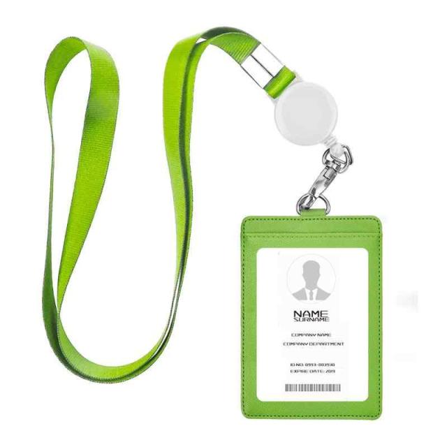 IDカードホルダー ネームホルダー 名札ホルダー PU 横型 社員証 カードケース カードケース メンズ 防水 伸縮リール式 ネックストラップ 吊り下げ パスケース カード入れ 名札ケース 定期入れ 通勤 通学 男女兼用 名刺入れ (縦+グリーン)