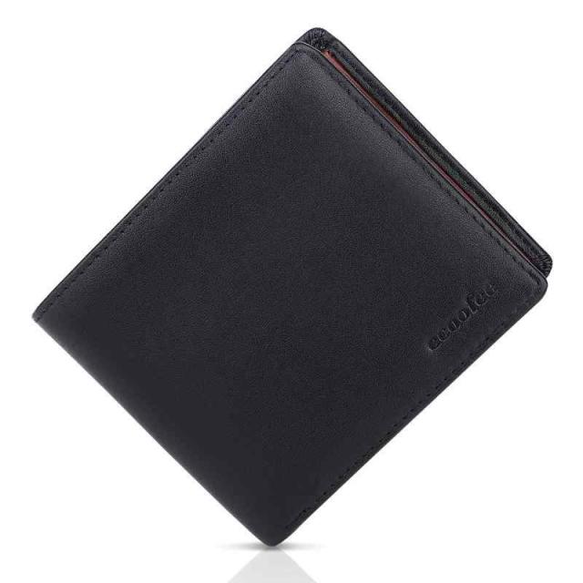 [ecoofee] 財布 メンズ 二つ折り 本革 薄い ボックス型小銭入れ 一流 の 財布 職人 が 作る 二つ折り財布 サイフ コンパクト (Black)