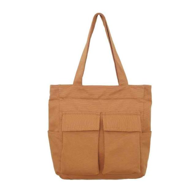 [Wowcarbazole] トートバック キャンバス 大容量 ショルダーバッグ 無地 肩掛け バッグ キャンバストートバッグ レディース メンズ ファスナー付き 一泊 旅行バック 通学 (C02.ブラウン)