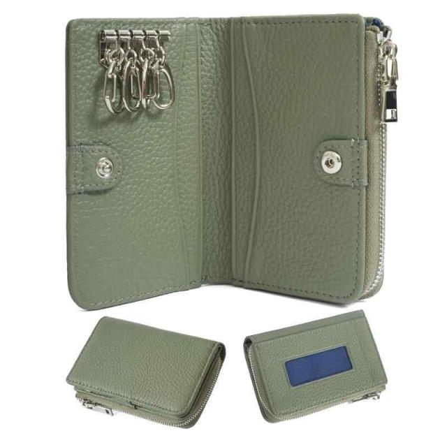 [imeetu] キーケース ミニ財布 マルチケース メンズ レディース スマートキーケース 本革 4連フック付き コンパクト 人気 便利 財布 カードケース 小銭入れ 多機能 軽量 (モスグリーン)