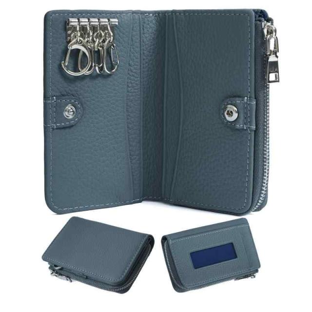 [imeetu] キーケース ミニ財布 マルチケース メンズ レディース スマートキーケース 本革 4連フック付き コンパクト 人気 便利 財布 カードケース 小銭入れ 多機能 軽量 (ダックブルー)
