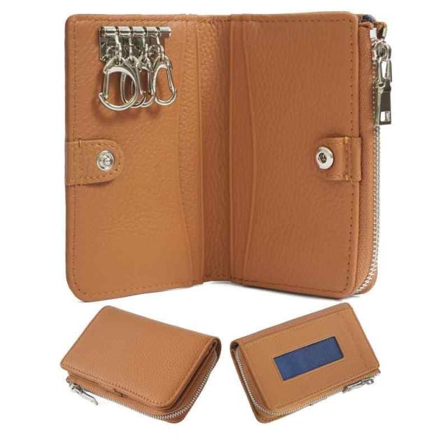 【効率的な収納設計】 4つのキーフックで鍵を安全に収納し、4つのカードスロットとジッパーポケットでカードや紙幣を整理整頓。さらに、ジッパーポケットには最大20枚の硬貨を収納できる十分な容量を持つため、小銭整理も簡単です。