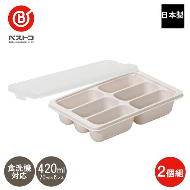 リバティーコーポレーション おかず 冷凍トレー 70ml×6マス 2個組 LD-340 | 冷凍 保存 容器 小分け トレー お弁当 離乳食 作り置き ワームグレー LD-340