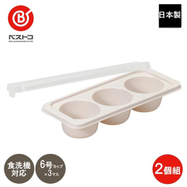 リバティーコーポレーション おかず 冷凍トレー冷凍 6号カップ×3マス 2個組 LD-342 | 保存 容器 小分け トレー お弁当 離乳食 作り置き ワームグレー LD-342