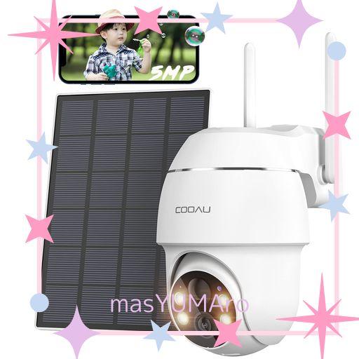 【進化500万超高画素・天井/壁両用防犯カメラ】COOAU 防犯カメラ 屋外 ソーラー 4灯夜間カラー撮影 PIR人体検知 5DBIWIFI強化 360°広角撮影 PTZカメラ 監視カメラ 屋外用 電源不要 配線工事不要 …