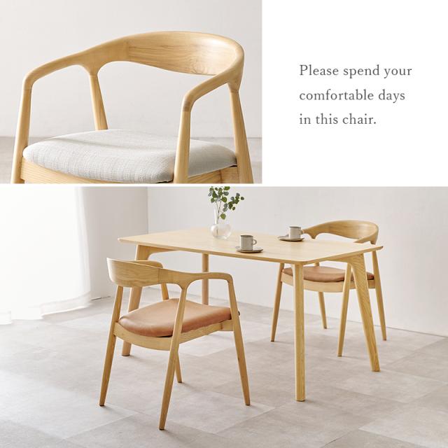 ダイニングチェア 1脚 ダイニング チェア ダイニングチェアー 肘 椅子 おしゃれ 完成品 木製椅子 チェアー クッション 食卓椅子 1脚単品 ラウンド カルモ 北欧風 ナチュラル 肘つき 組立不要 天然木 アッシュ材 肘掛け