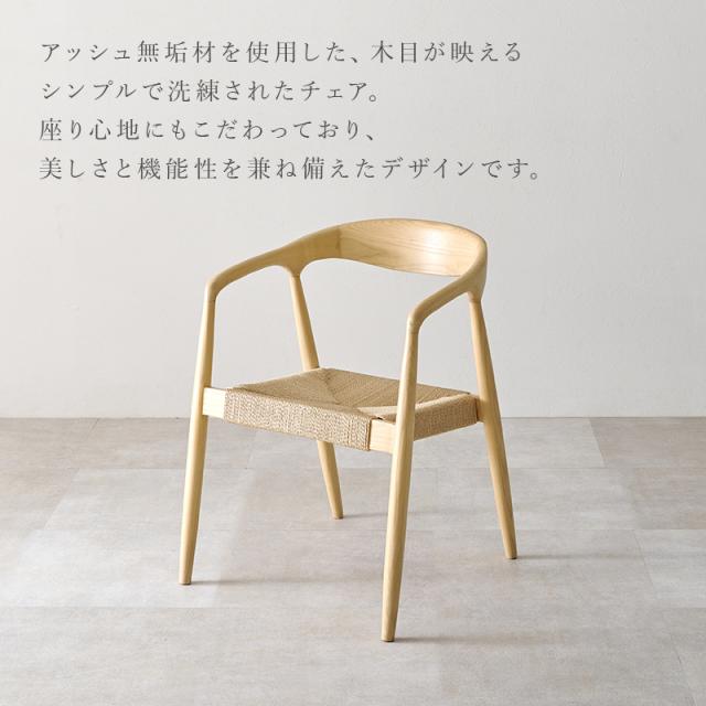 アッシュ無垢材を使用したダイニングチェア「カルモ」1脚単品。