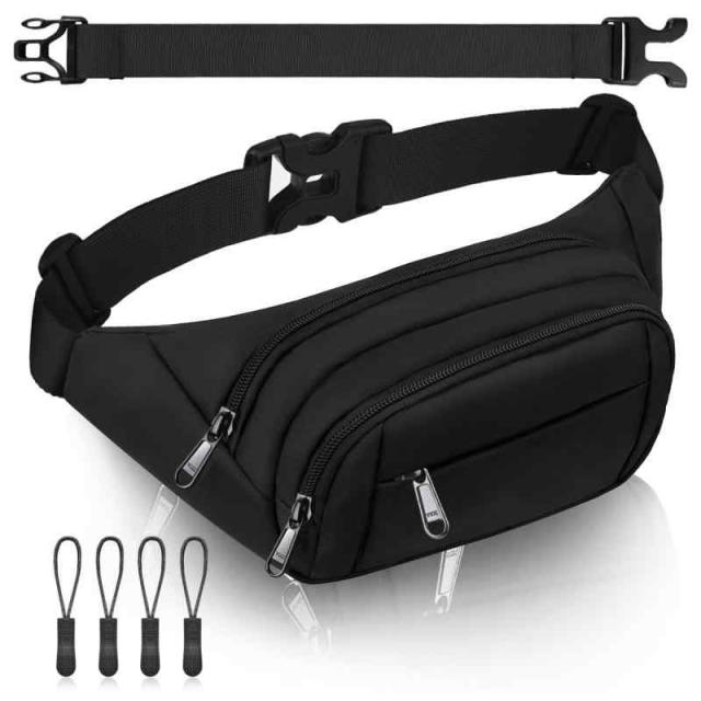 [HOUSMART] ウエストポーチ メンズ レディース ウエストバッグ ランニング ポーチ YKKファスナー 収納力 デジカメ/ipad mini7.9インチ/iPhone 7 Plus/ペット ボトルまで 旅行 ランニング 仕事 作業用 4ポケット 軽量 (ブラック)