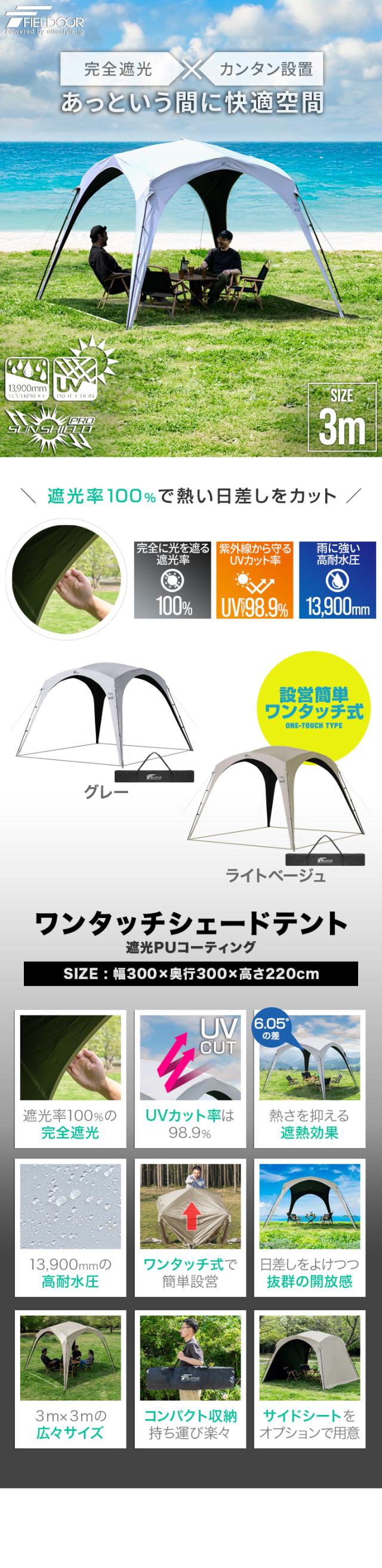 FIELDOOR 日よけ テント サンシェード ワンタッチシェードテント 遮光 遮熱 UVカット 耐水 3m 2人〜4人 スクリーンタープ シェルタータープ 送料無料