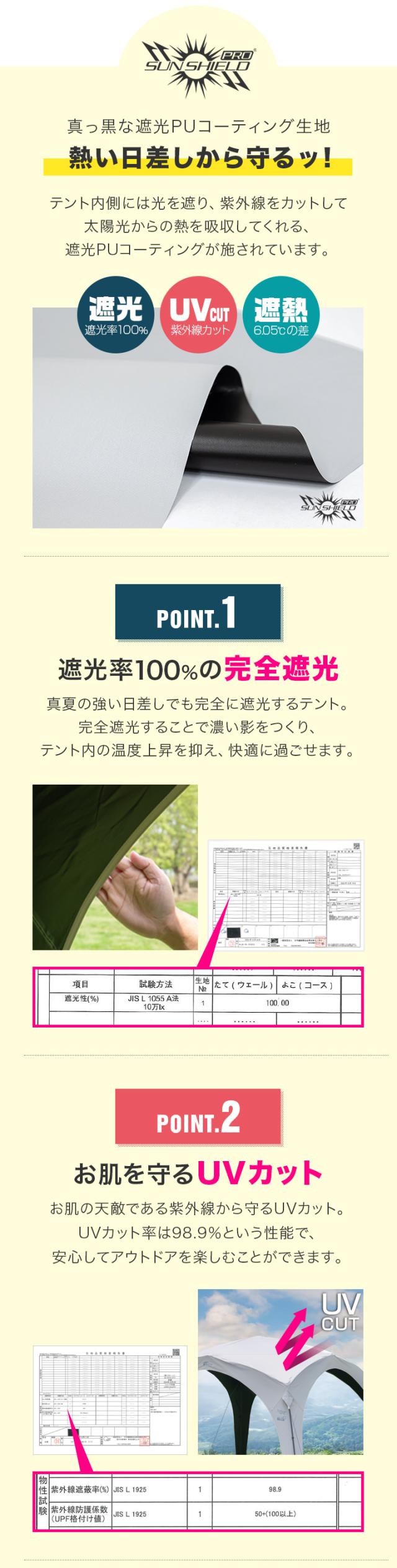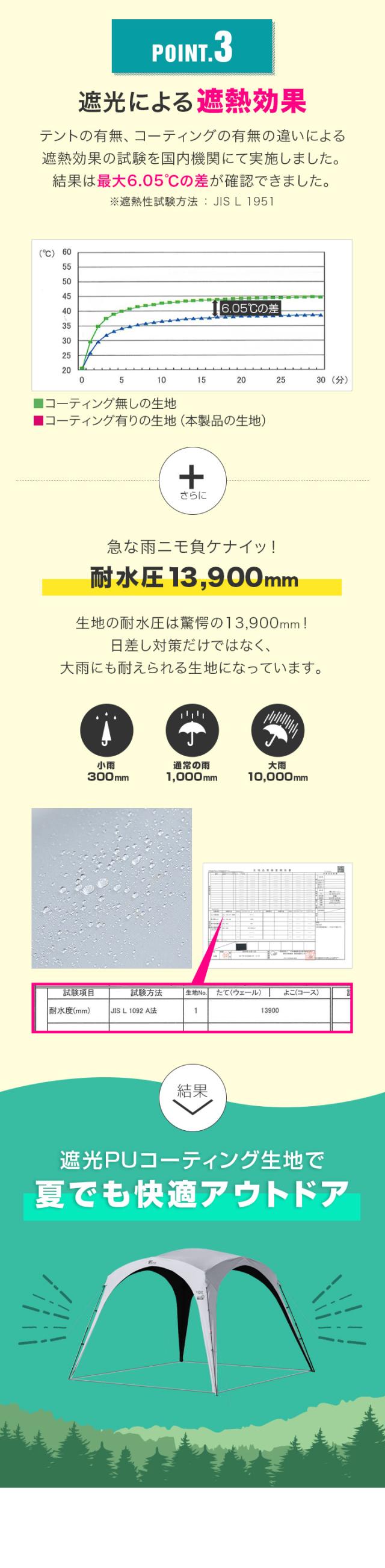 | 材質: ・フライシート : ポリエステル(PUコーティング) 他 ・フレーム : スチール・グラスファイバー 他 |