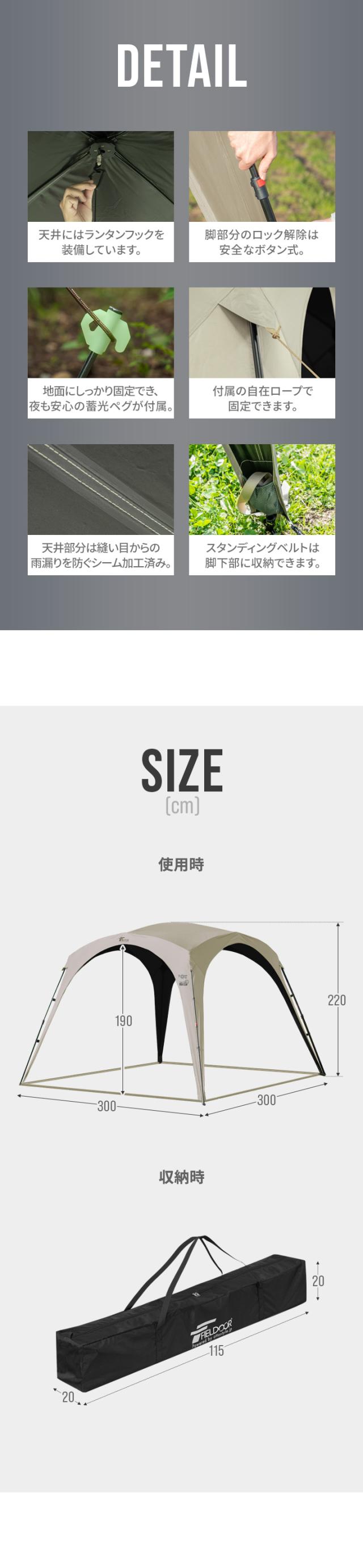 | サイズ: (約)幅300cm×奥行300cm×高さ220cm ※収納時 : (約)幅115cm×奥行20cm×高さ20cm |