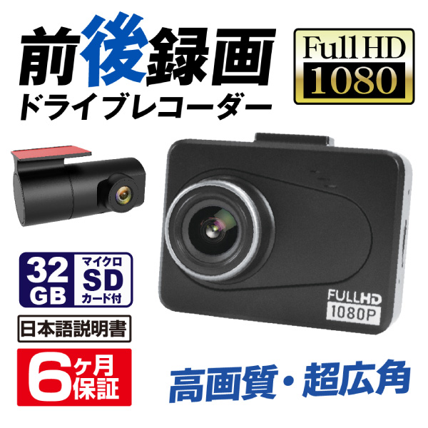 ドライブレコーダー 前後 録画 ドラレコ 小型 ドライブレコーダーS109(32GB SD付)1個 12V車 リアカメラ付 Gセンサー 国華園