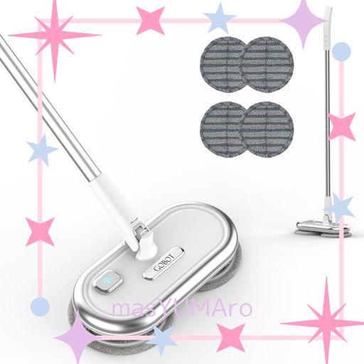 GOBOT 電動 回転モップクリーナ 軽量 電動モップ 水拭き コードレス 床拭き モップパッド4枚付き フローリング掃除 高速回転 充電式 自立式 掃除グッズ