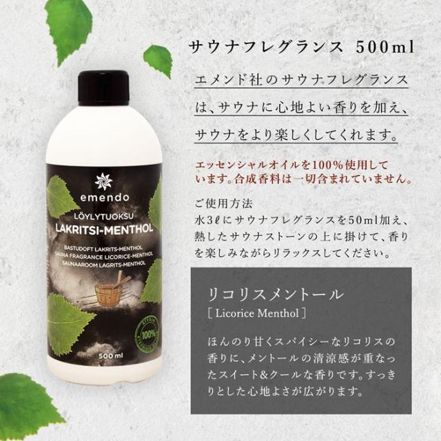 【EM-5748】EMENDO エメンド サウナ フレグランス ロウリュ 北欧 フィンランド製 直輸入 アロマオイル リコリスメントール 500ml