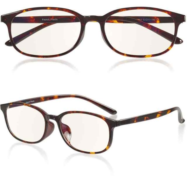 【最新改良版】ご要望にお応えして ブルーライトカット率45%以上の高機能レンズを新たに搭載【素材構成】 フレーム素材:超軽量弾力「FRENCH PLASTIC G850」 鼻パッドの形状:フレーム一体型 レンズ:高品質プラスチック/ブルライトカット率45%/UVカット率99%/HEVカット率99%