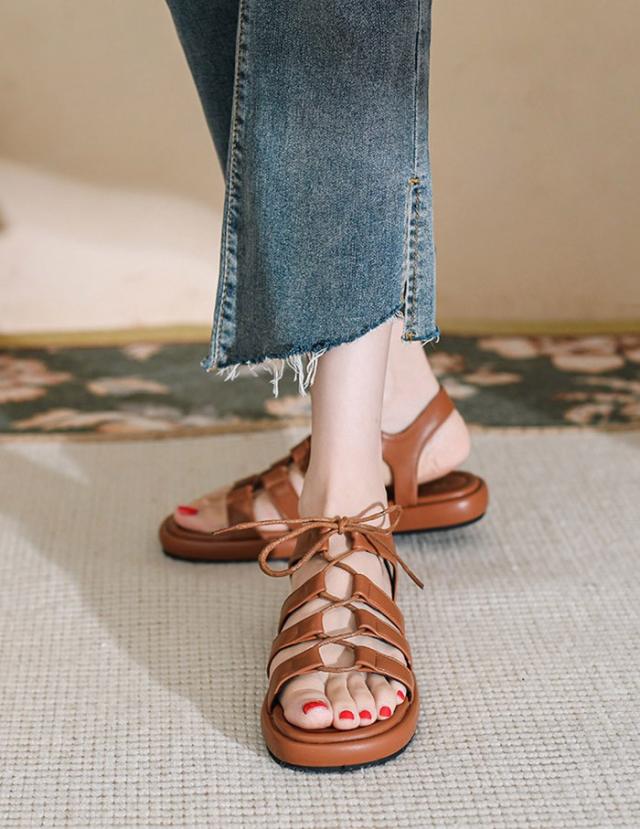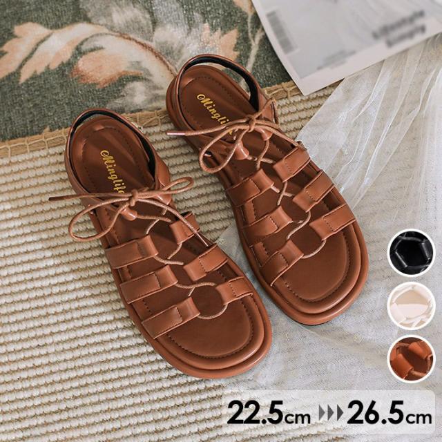 ストラップサンダル 編み上げ サンダル ぺたんこサンダル ぺたんこ ぺったんこ お洒落なサンダル 歩きやすい ローヒール レディース かかとあり 夏 ベルト 靴 女性 大人 美脚 シューズ シンプル 大きいサイズ mh006n1n1zu