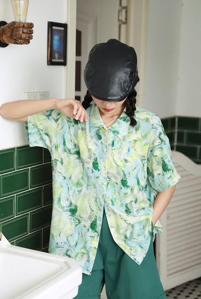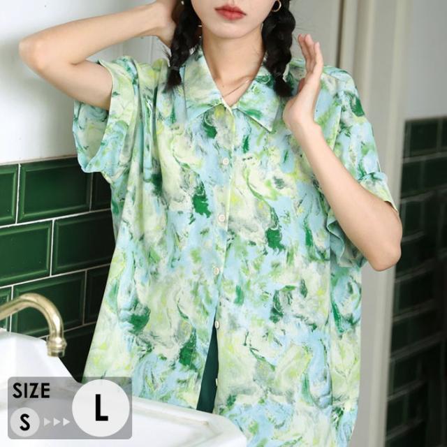 アロハシャツ 半袖 男女兼用アロハシャツ 夏物 お揃い メンズ レディース アロハ柄 ペア シンプルデザイン ハワイアン 開襟シャツ 半袖シャツ オープンカラー カジュアル ストリート ユニセックス レトロ グリーン S-L