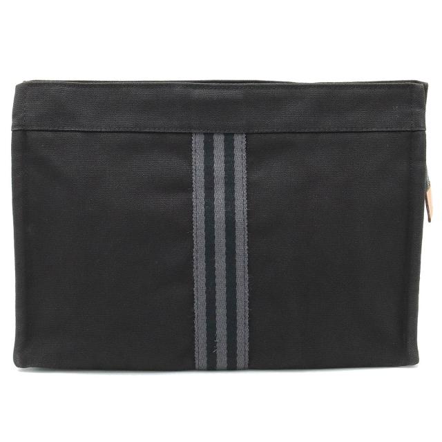 HERMES エルメス フールトゥ クラッチバッグ セカンドバッグ ポーチ キャンバス レザー ブラック 黒 グレー
