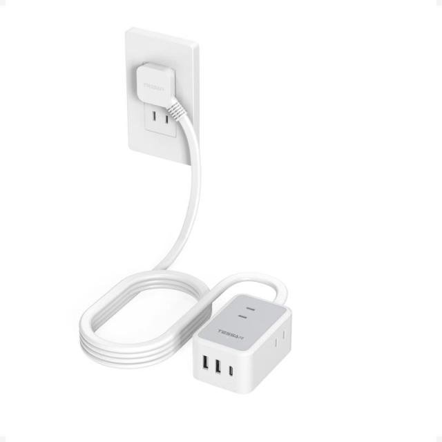 TESSAN 延長コード 2m 薄型 電源タップ usb コンセントタップ たこあしコンセント テーブルタップ (3m, 薄型プラグ)