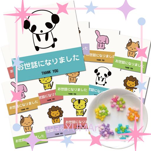 お世話になった方への退職のあいさつにぴったりのこんぺいとうをセレクトし、かわいい5種類のアニマルをプチギフトにしました。人気の金平糖プチギフトのお菓子セットです。