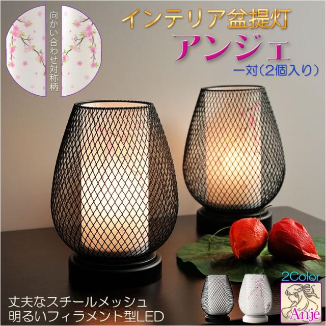 お盆提灯【仏縁堂オリジナル インテリア盆提灯:アンジェ 明るいフィラメント型LEDコードレス 枝垂れ桜(1対対称柄2個入) ブラック】現代調の盆提灯 霊前灯 お盆飾り 和照灯 ちょうちん 新盆 初盆 電池式コードレス 送料無料